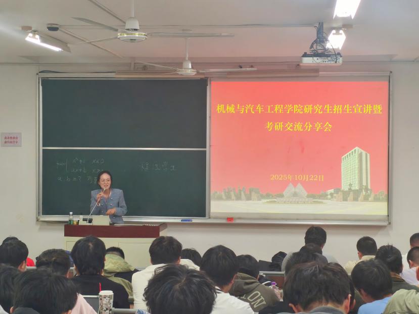 王思涵介绍了学院机械工程学术型硕士、机械和能源动力专业硕士招生情况,鼓励同学们积极报考本校研究生。同时叮嘱同学们要注意劳逸结合,保持良好的学习状态,坚定信念、全力冲刺,以饱满的精神迎接考试。