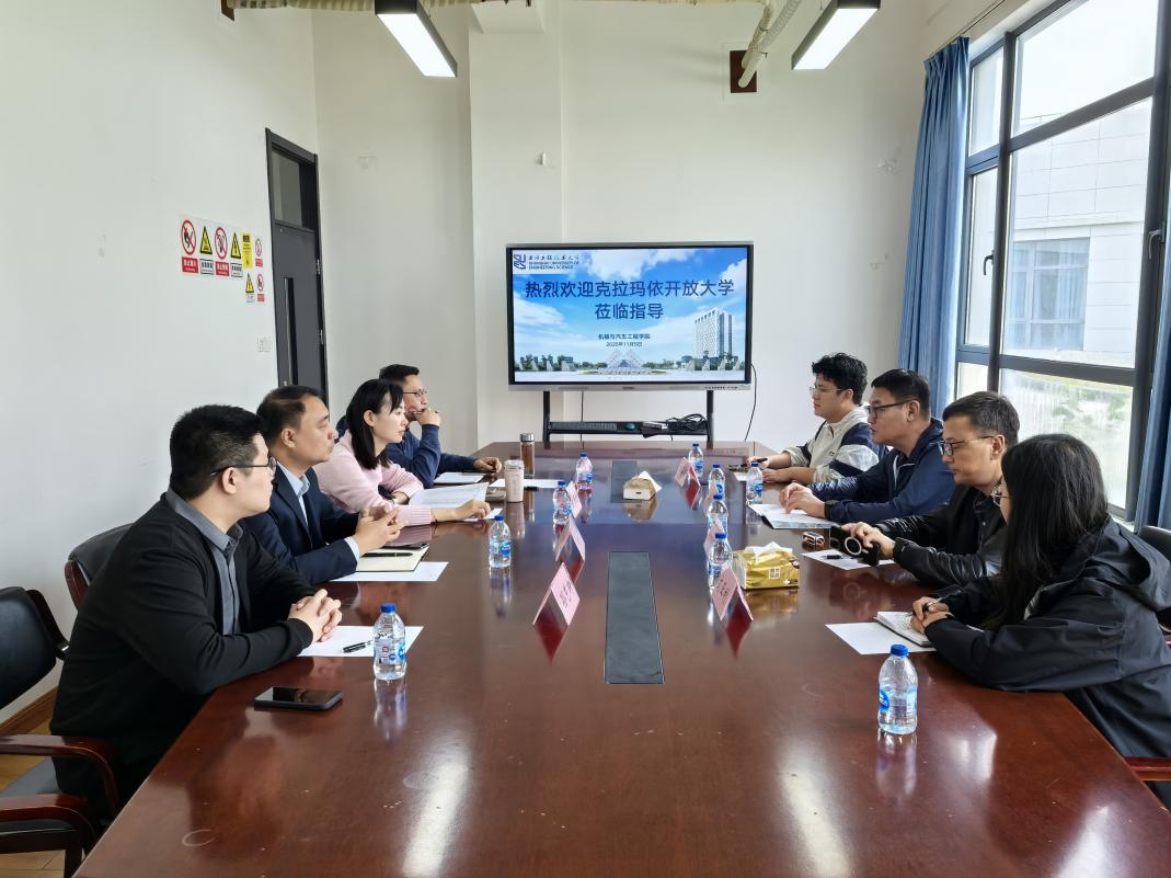 11月5日,克拉玛依开放大学沪克工匠教育合作办公室负责人叶晓波、考试中心负责人帕尔哈提·热合木一行莅临SJB世俱杯官方网站考察学习。学院党委副书记黄中子、汽车工程系主任刘飞、智能车辆工程系主任黄孝慈及辅导员孙艺轩参加交流。