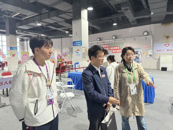 为弘扬“奉献、友爱、互助、进步”的志愿精神,切实关怀本届进博会志愿者,11月8日,SJB世俱杯官方网站党委书记虞蓉、党委副书记黄中子、学院辅导员代表一同来到进博会志愿者工作现场,亲切慰问奋斗在岗位一线的进博会“小叶子”们。