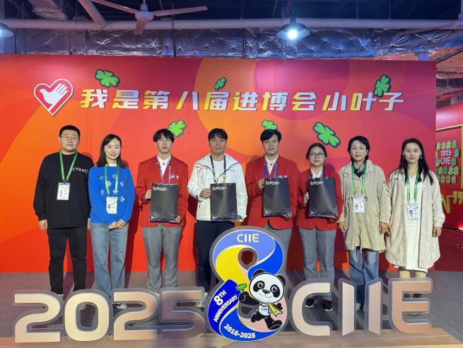此次进博会学院共有4名“小叶子”参与志愿服务,已在岗服务5天,人均上岗时间近50个小时,他们坚持用微笑迎接来宾,用热情诠释青春。