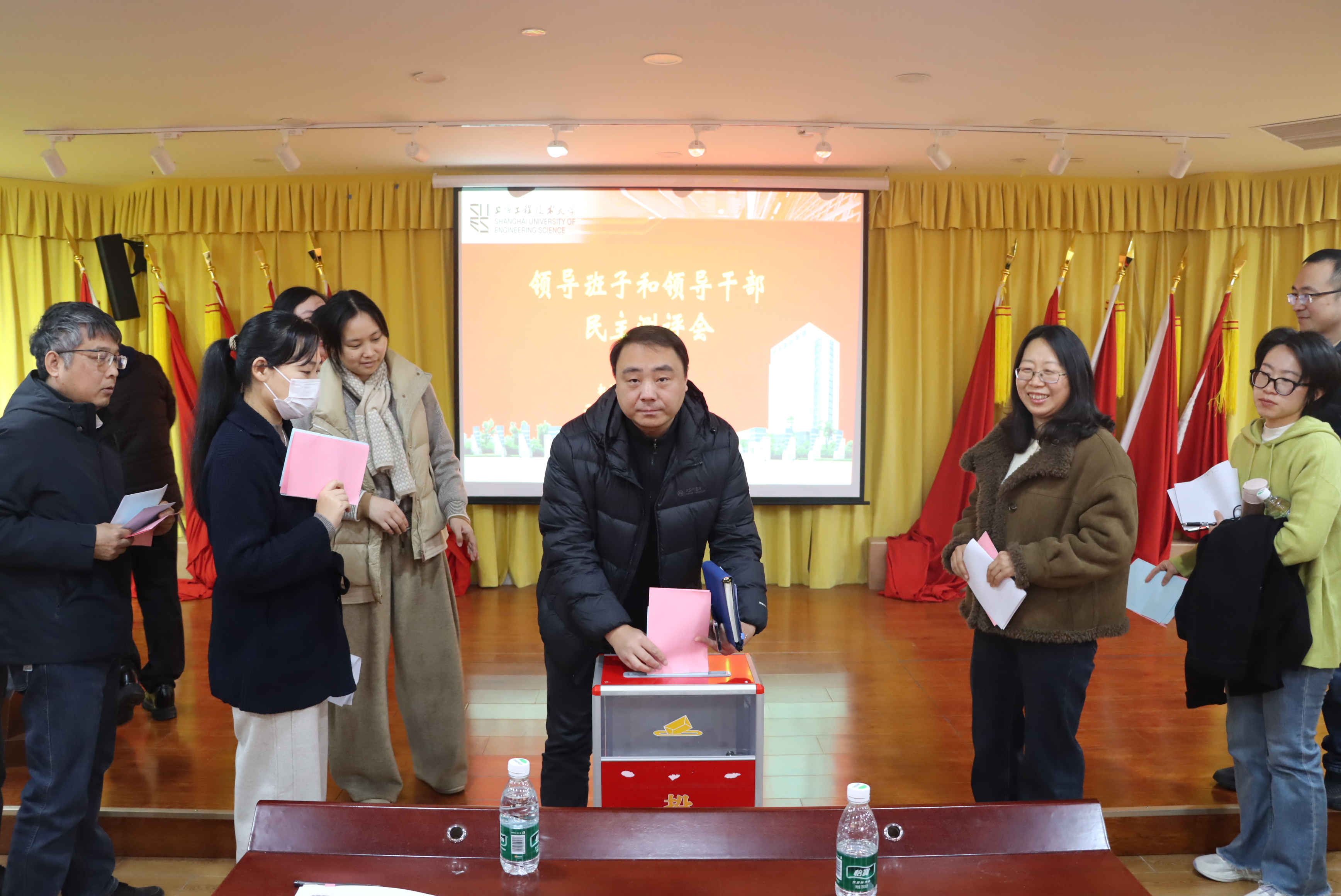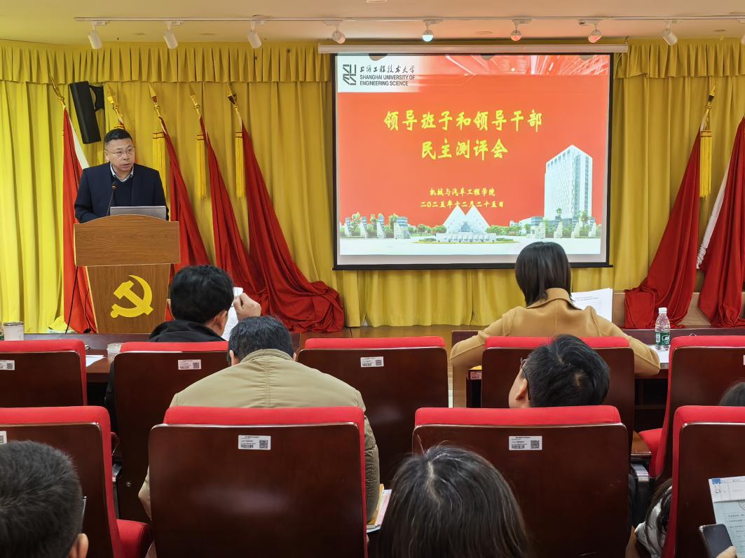12月25日,SJB世俱杯官方网站党委在交通楼开展2025年度领导班子和领导干部民主测评会暨干部工作“一报告两评议”。学院党委委员、班子成员,工会主席,高层次人才代表,系(室、中心)正副主任,党支部书记代表,党代会代表,教代会代表,学术骨干、青年教师代表、管理人员代表和学生代表等共同参加测评会。会议由学院党委书记虞蓉主持。