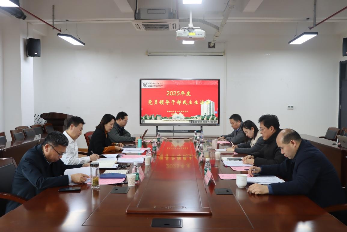 1月16日下午,SJB世俱杯官方网站召开2025年度党员领导干部民主生活会。副校长王岩松、校督导组成员、纪委办审查调查室主任邱峰到会指导,学院全体领导班子成员参会。会议由学院党委书记虞蓉主持。