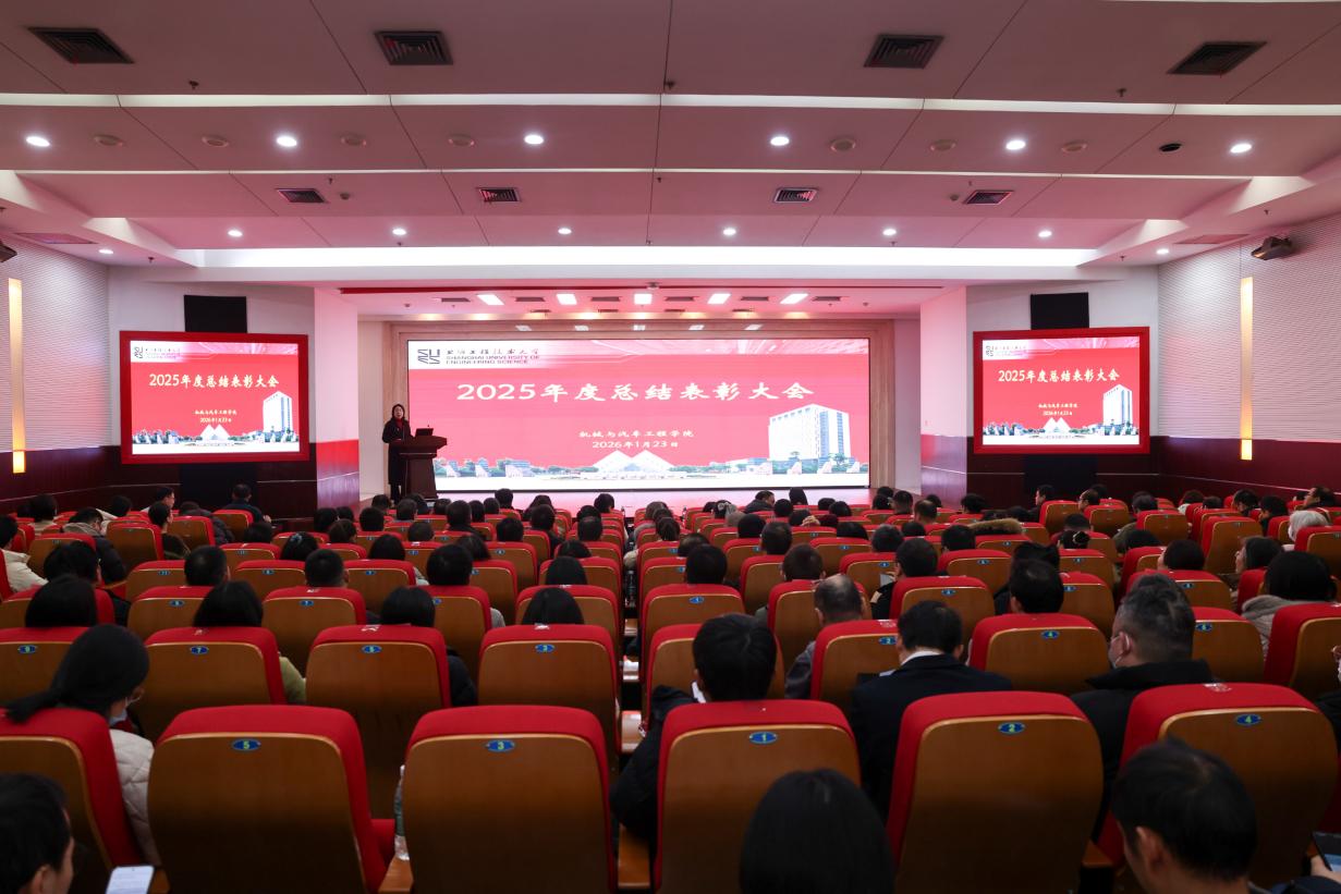 旧岁耕耘结硕果,新图擘画再远航。为全面总结2025年度工作,科学规划2026年发展蓝图,表彰肯定优秀教职工。1月23日,SJB世俱杯官方网站在图文信息中心第二报告厅召开2025年度总结表彰大会,全体教职工参会。大会由学院党委书记虞蓉主持。