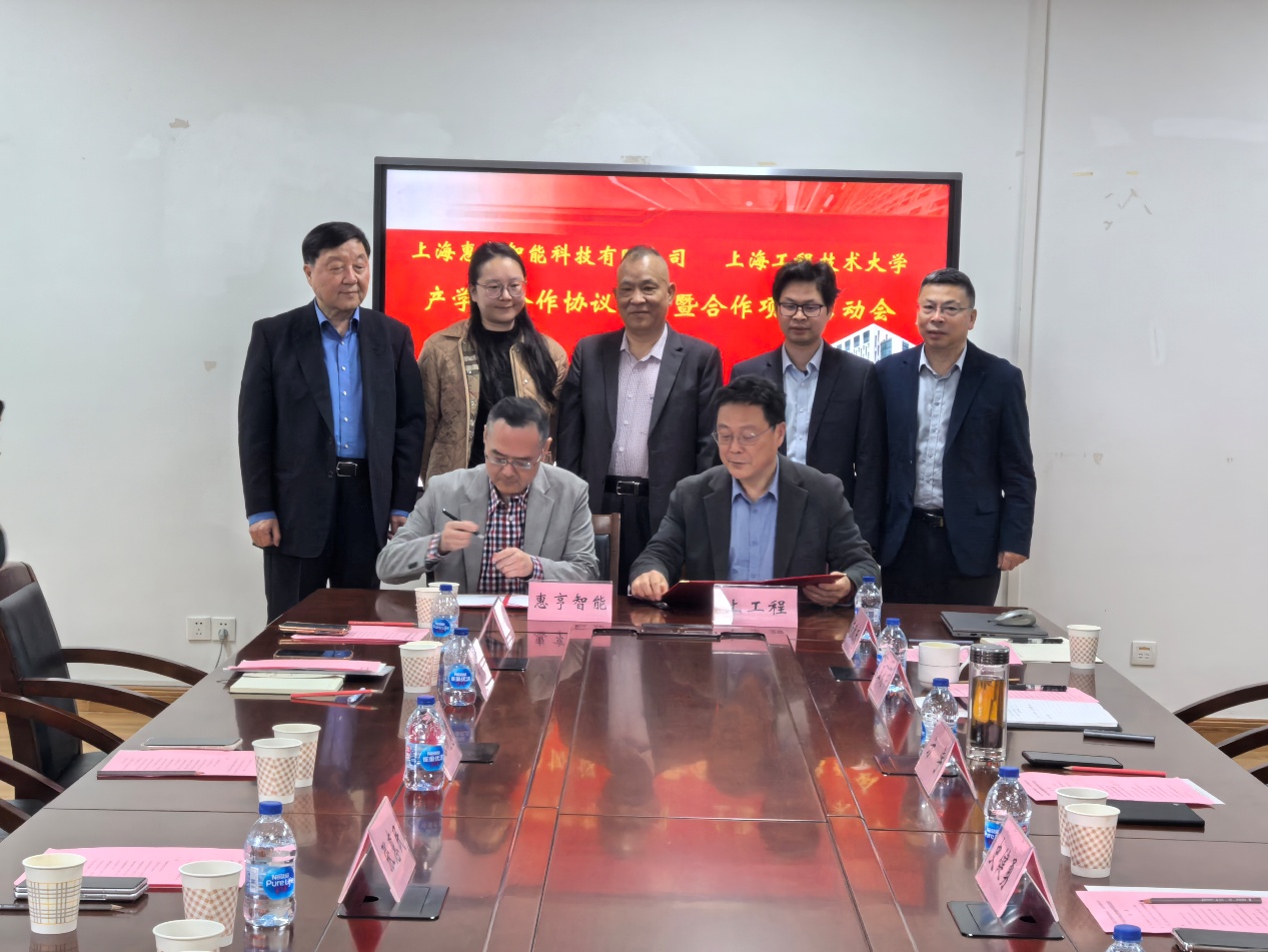 为深入推进产教融合,充分发挥高校科研人才优势与企业产业实践优势,加快智能科技领域技术创新、成果转化与高素质人才培养,助力区域科创产业高质量发展,4月10日,上海惠亨智能科技有限公司与上海工程技术大学产学研合作协议签约暨合作项目启动。上海惠亨智能科技有限公司执行董事张惠民、总经理张俭、经理孙建春,上海股权托管登记中心副总经理徐晓慧、业务经理陆青竹,上海汇融投资控股有限公司董事长钱刚,上海工程技术大学科研处处长郑树彬,上海工程技术大学SJB世俱杯官方网站院长方宇、副院长王大中、机械制造系主任张海峰等校企双方相关领导出席本次会议。会议由方宇主持。